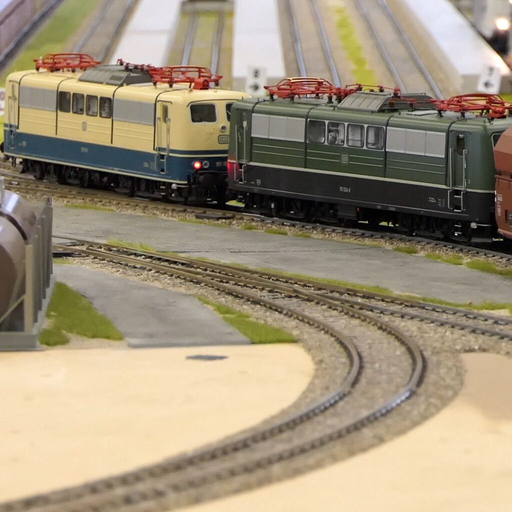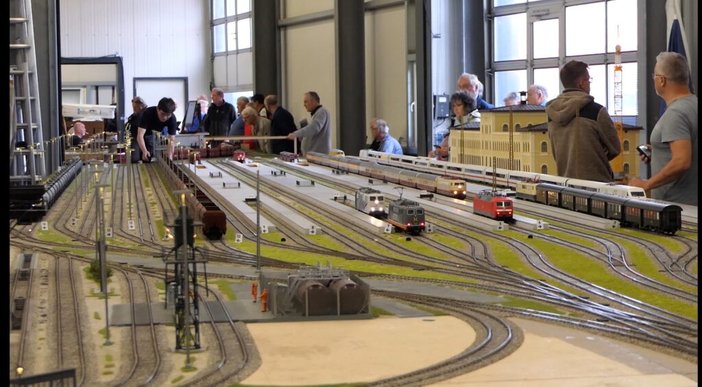 Der Nachmittag und Abend brachte so manche entspannende Momente und viele Besucher konnten beim Anblick der roten Fantasie-Dampflok „Wolpy“ mit Stromabnehmer und E-Lok-Sound herzhaft lachen. Im Einsatz zu sehen waren auch einige gigantische Züge, wie ein 14-teiliger ICE 1, ein „Langer Heinrich“ aus zwei Elloks der Baureihe 151 mit 50 vierachsigen Erztransportwagen und ein amerikanischer Dieselzug. Zudem gab es aktuelle Lokneuheiten, wie beispielsweise zwei Handmuster der Akku-Kleinlok Ks/Ka von Dingler Präzisionsmodelle und eine seit kurzem lieferbare Dampflok der Baureihe 92.2-3. In diesem Video erkläre ich auch am Anfang einige Anlagendetails und bei Minute 56 gibt es eine fast sieben Minuten lange Kamerawagen-Rundfahrt aus der Modellbahn-Lokführerperspektive.