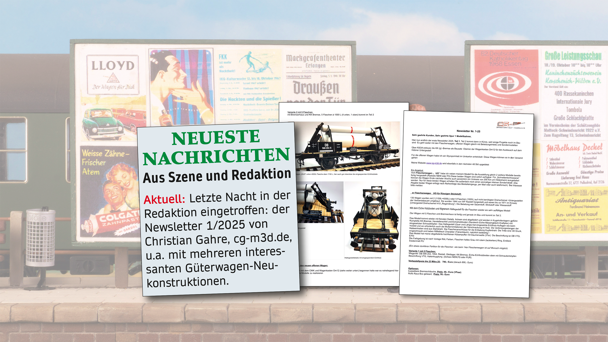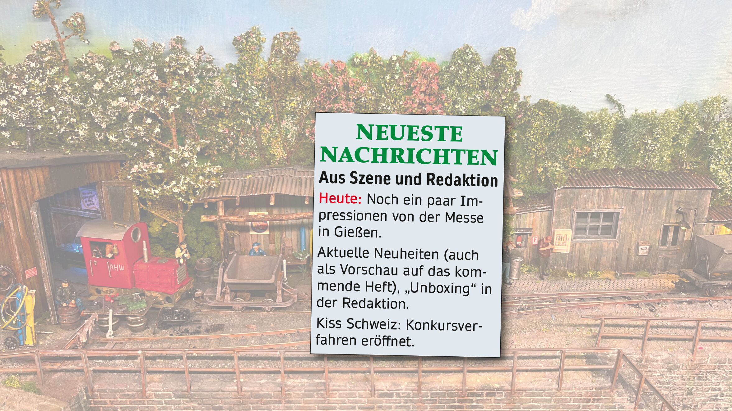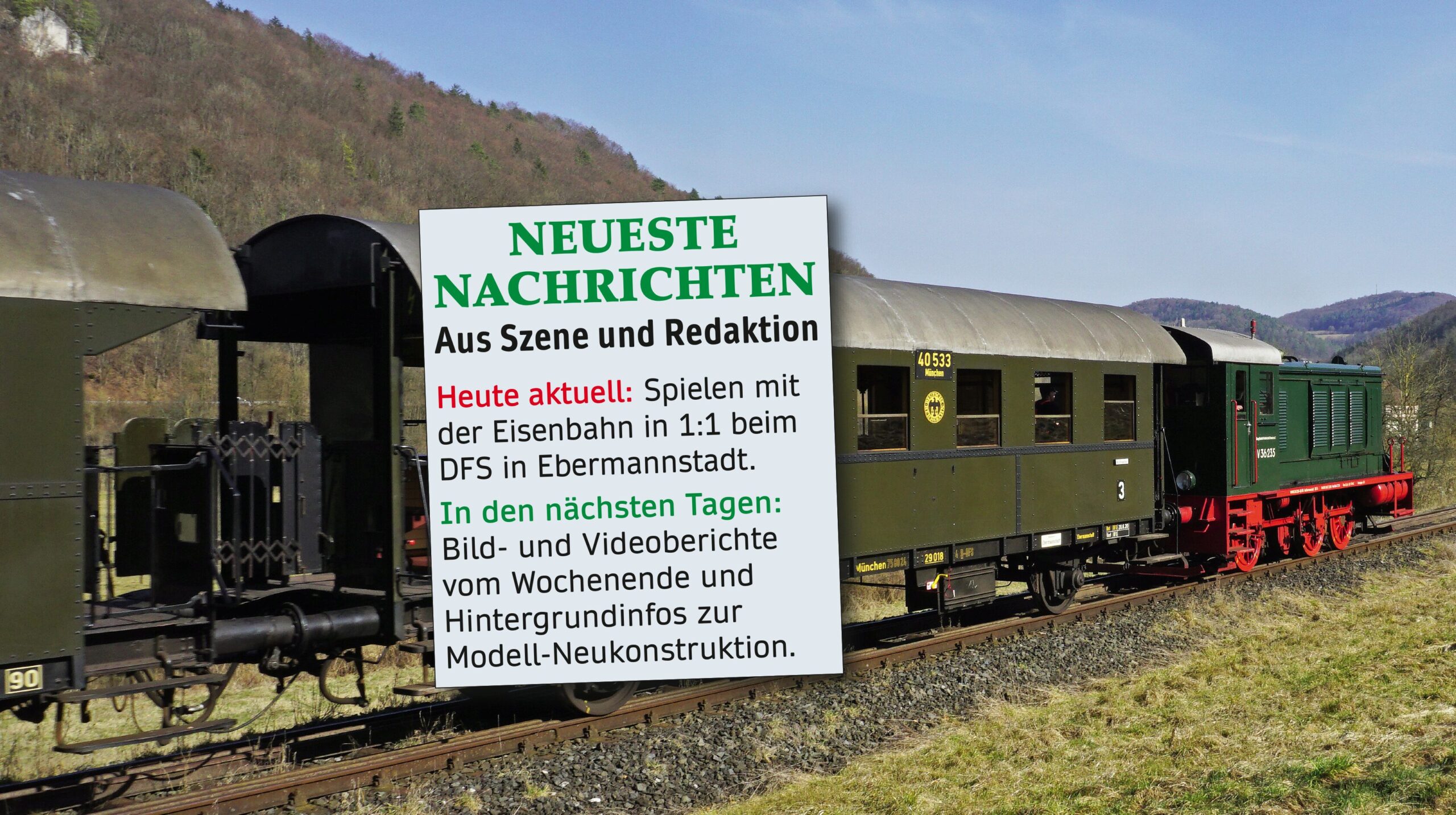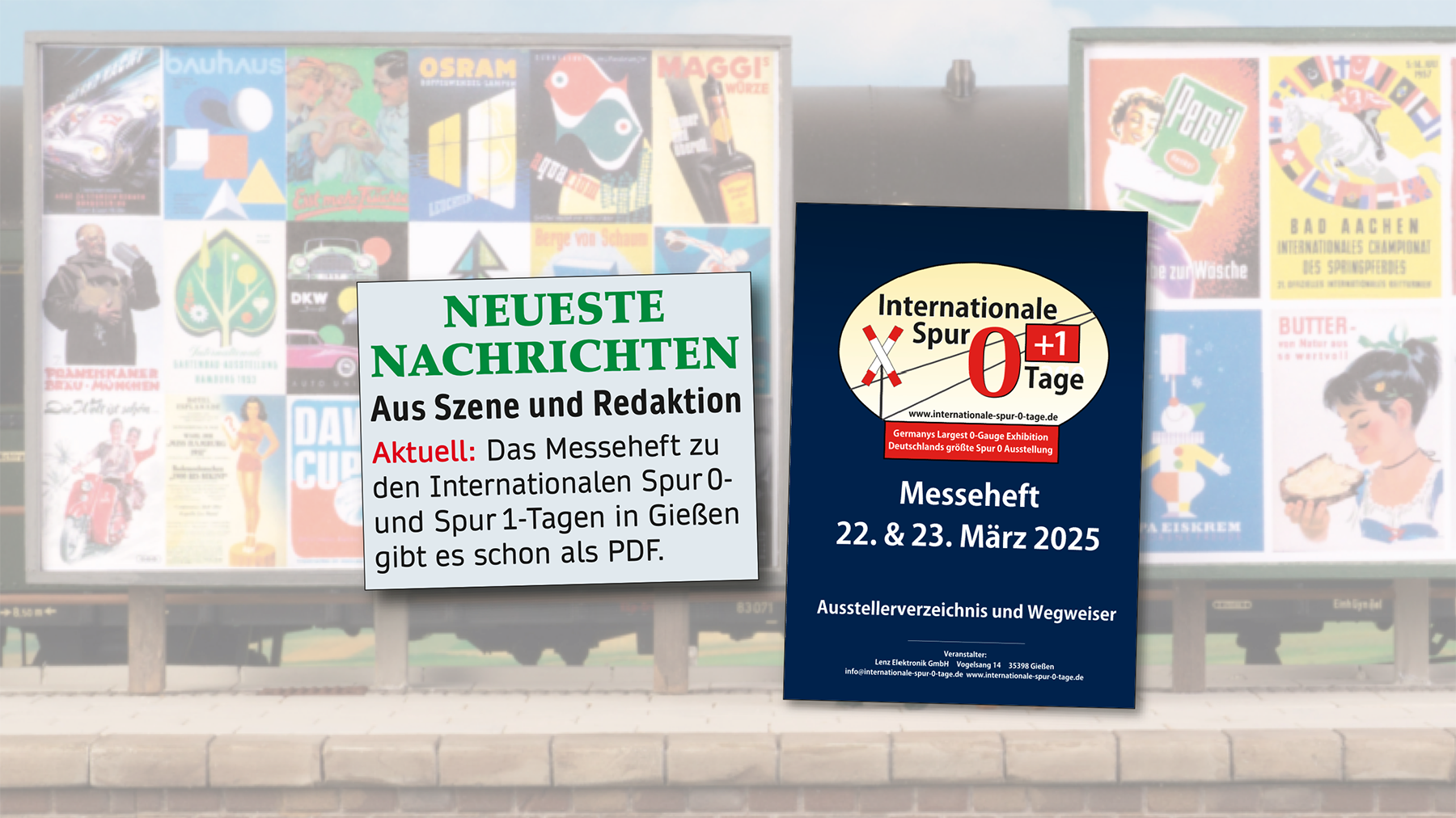 Was tut sich in Szene und Redaktion? Aktuelle Meldungen zu allem, was sich rund um die Spur-1-Modelleisenbahn ereignet, werden hier veröffentlicht. Neuankündigungen von Modellen, Handmuster und Auslieferungen gehören ebenso dazu, wie Firmennachrichten, bedeutende Termine oder Berichte von Messen usw.