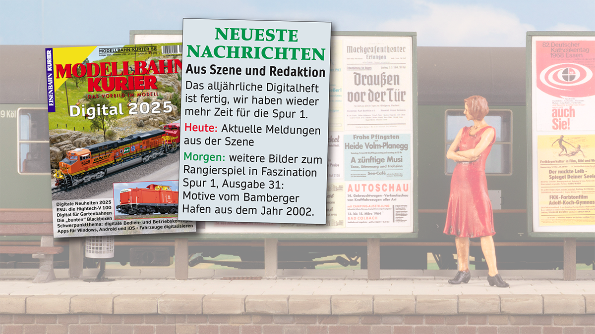 Was tut sich in Szene und Redaktion? Aktuelle Meldungen zu allem, was sich rund um die Spur-1-Modelleisenbahn ereignet, werden hier veröffentlicht. Neuankündigungen von Modellen, Handmuster und Auslieferungen gehören ebenso dazu, wie Firmennachrichten, bedeutende Termine oder Berichte von Messen usw.