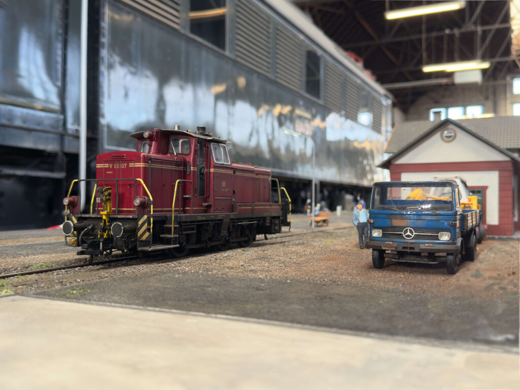 Zum zehnten Mal bauten die Mitglieder der IG Spur 1 Mittelrhein ihre beeindruckende Modulanlage im Maßstab 1:32 in der Fahrzeughalle des Museums in Koblenz-Lützel auf. Mit den Ausmaßen von 45 m x 6 m und mit einer Streckenlänge von etwa 320 m bietet sie den Lokomotiven und Waggons der Mitglieder und Gastfahrer reichlich Auslauf und den Besuchern der Veranstaltung viel zu sehen. Ob es nun die Bahnhöfe mit ihrer realistischen Ausgestaltung oder die Streckenmodule mit vielen liebevollen Details, hier kommt jeder auf seine Kosten. Wobei – das stimmt nicht ganz, denn der Eintritt ist wie in den vorherigen Jahren für alle Besucher kostenlos.