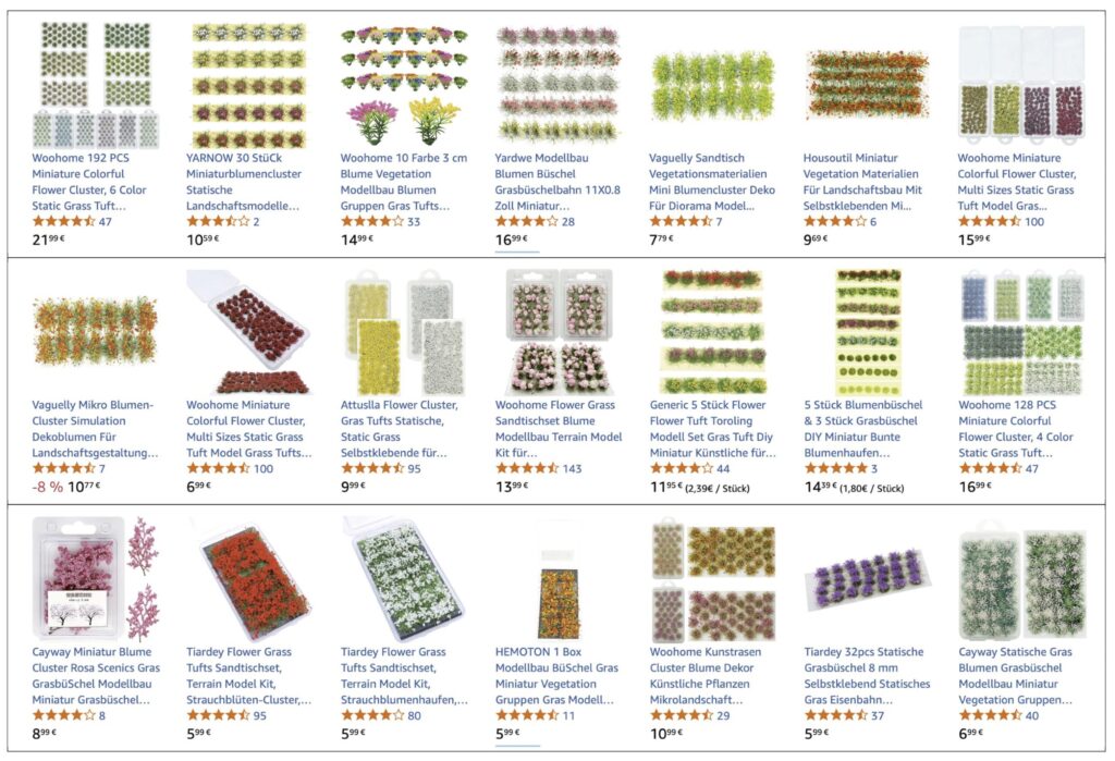 Inzwischen wurde auch der Amazon Marketplace für uns fündig. Die schönsten der von uns verwendeten Gewächse sind allerdings bislang noch nicht dabei. Und die Herkunft ist weitgehend dieselbe wie bei Temu. (Screenshots: Amazon)