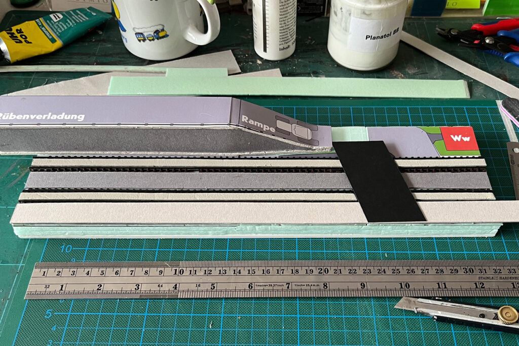 Wie bescheiden wirkt da doch unsere kleine Bastelei im Maßstab 1:160, bei der es nur um zwei Gleise, …